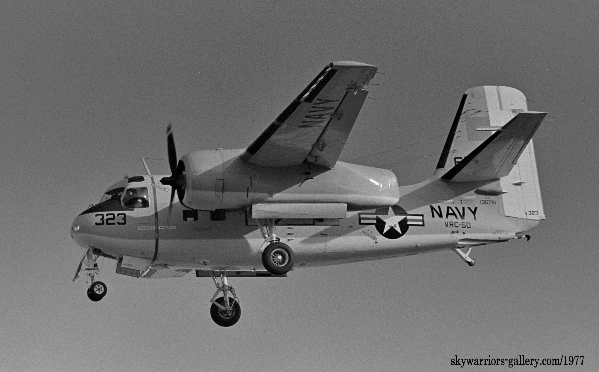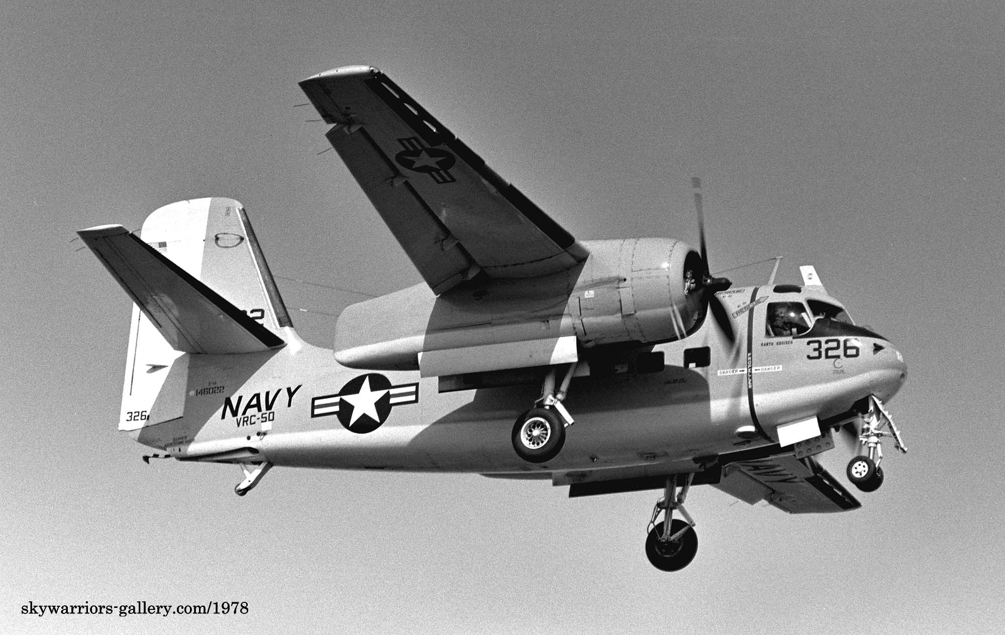 ↑ 1980年代に入ってから、VRC-50の機体は、統一された洒落たデザインのテールマークに変更された。C-2AやCT-39Eにまで施されたこのマーキングを見る事が出来た期間は長くは続かなかった。