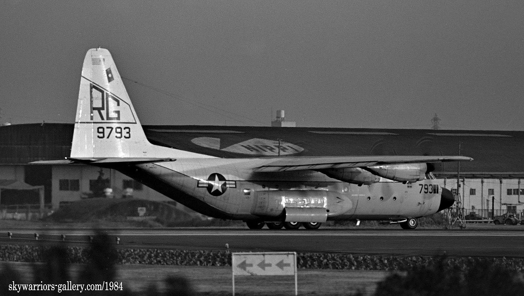 ↑ 1984年厚木基地R/W-19に着陸するVRC-50のC-130F/Bu.No.149787。1960年代中期にはVR-21に所属して”RZ"のテールコードを付けていた。日本でよく見る事ができたC-130Fの1機である。