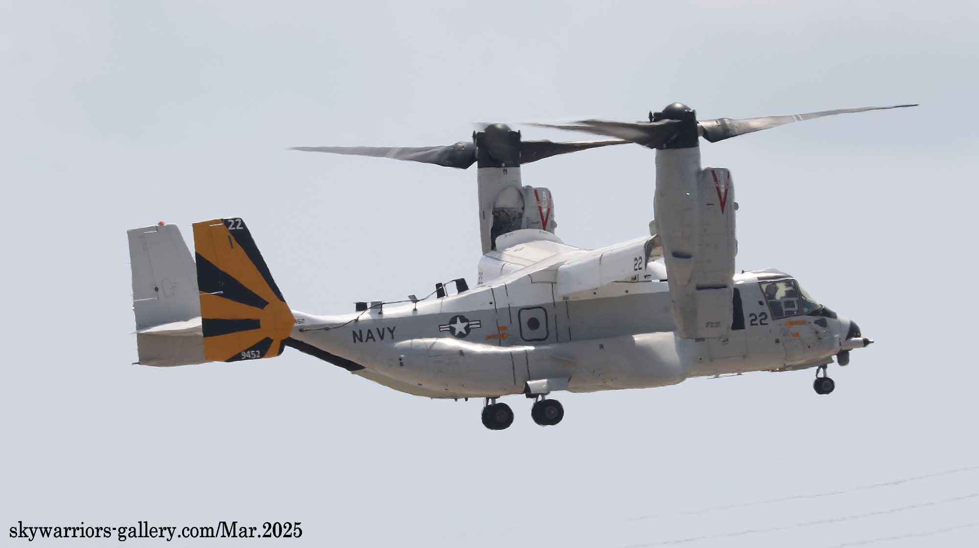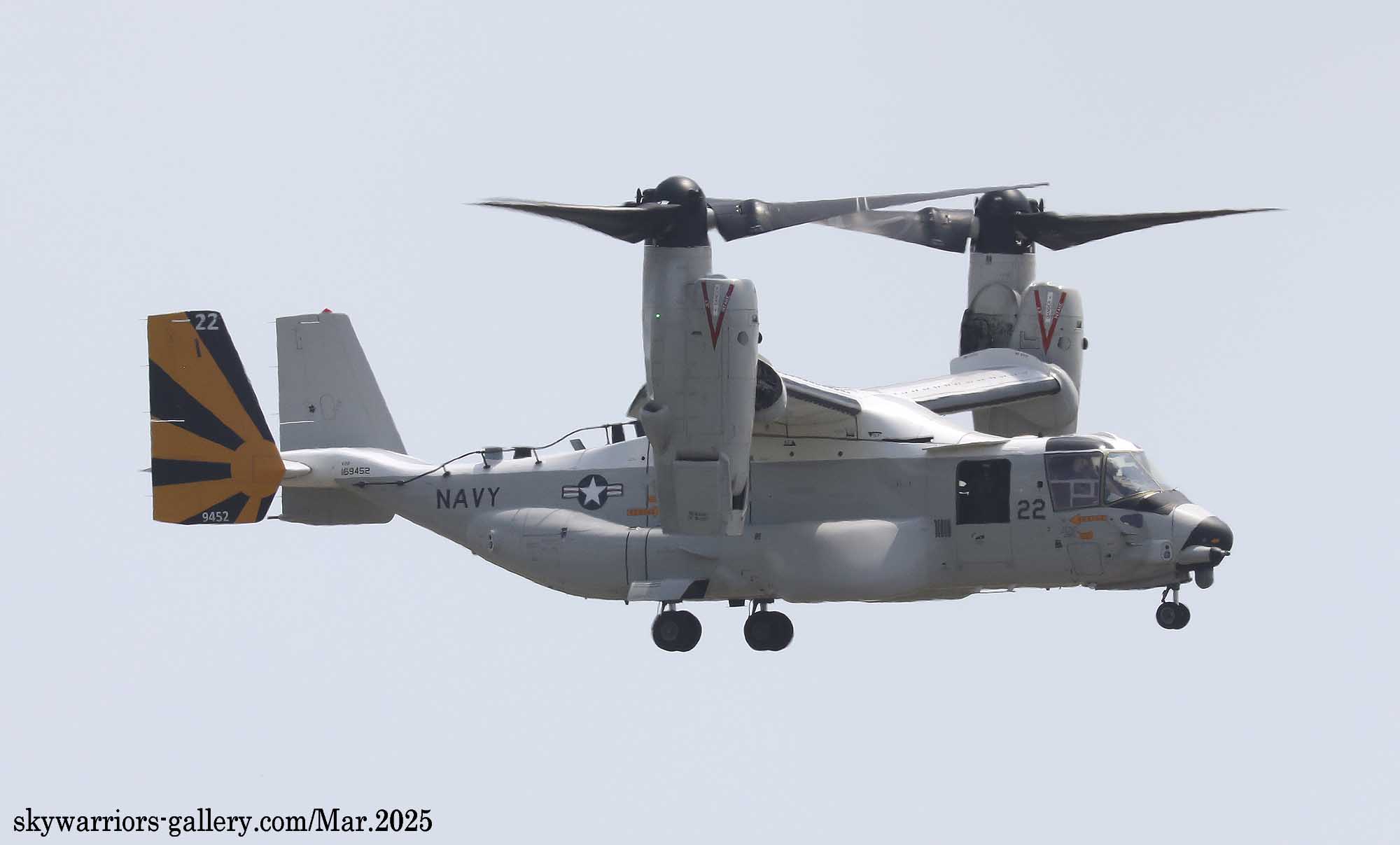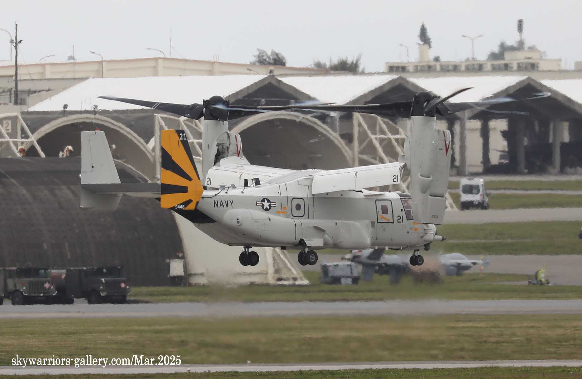 ↑ 2025年3月某日 いつの間にか飛来していたCMV-22B”Rudy-24” ビューアルナンバーは確認できなかったが、恐らくBu.No.169454。