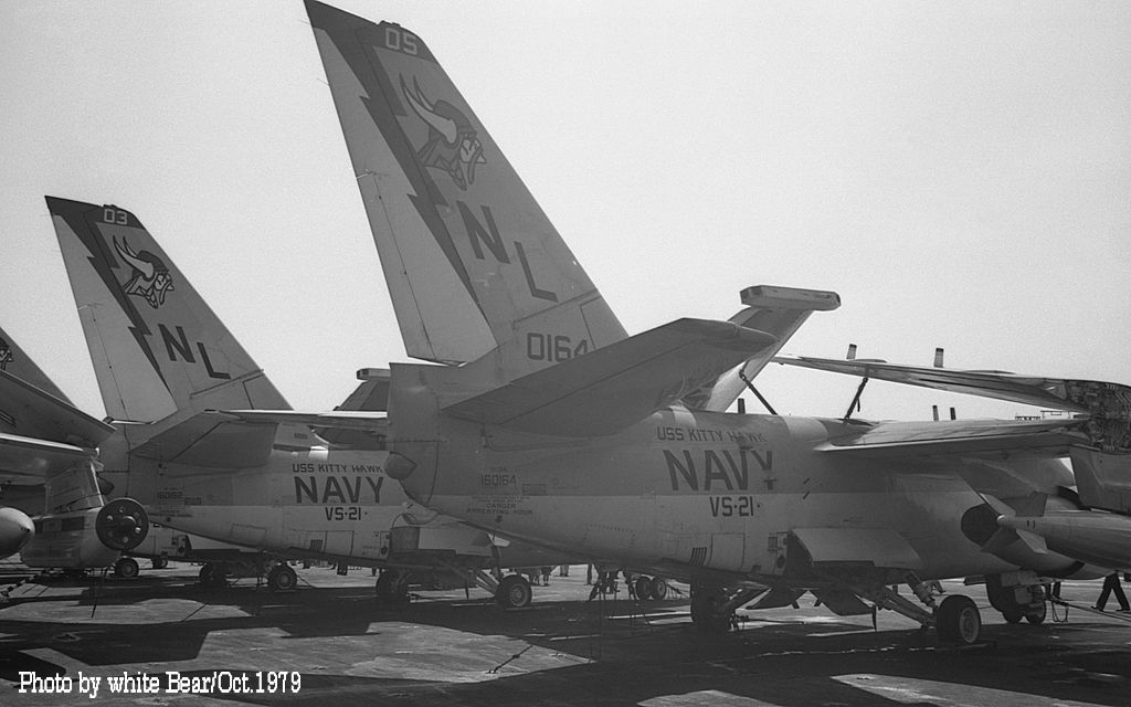 キティホークの公開であった。USSキティホークは、暫くの間CVW-2と共に行動していた為、”NH”のテールレターを連想されたのであったが、1979年秋の航空母艦甲板公開の時は”NL”となっていた。本項では、前項とのUSSコンステレーションの時とは異なり、VS-21はCVW-15の傘下に組み入れられていた為、”NL”のテールコードを付けたS-3Aを撮影する事となった。