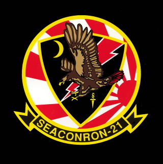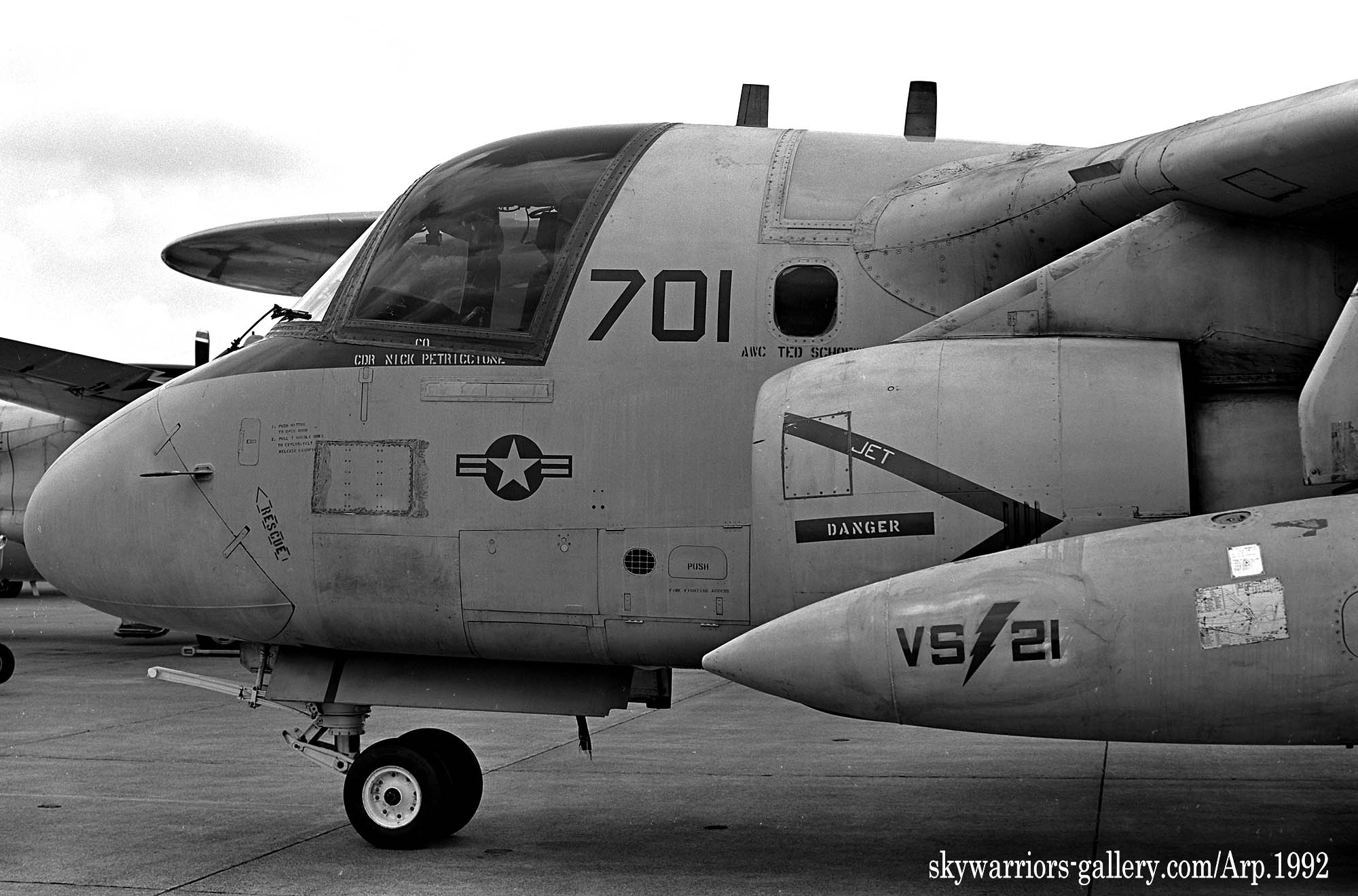 ↑ CVW-5の仲間入りしたVS-21には、1981年からバイキングに施された改造により、全機B型に更新されていた。また、全て濃淡グレーで塗装されたロービジ塗装が標準となった。