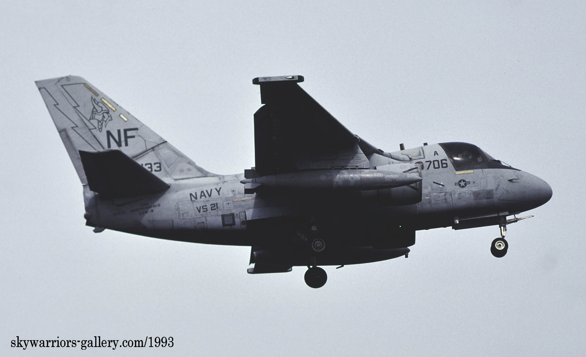 前項のUSSキティホーク号甲板でのS-3Aから12年経過した1991年8月5日、VS-21は新たに横須賀港に配備される事になった大型空母USSインディペンデンスに搭載されて、ノースアイランドを出港した。9月11日に横須賀に到着したインディペンデンスから飛び立った同隊の面々は、第7艦隊の空母艦載機として、厚木基地をベースとするようになったのである。機体はA型からB型へ変更されていたが、外見上はほとんど区別がつかない。翌1992年4月には湾岸地域の飛行禁止区域の監視の為、早速中東へ派遣され10月までの間、活動している。