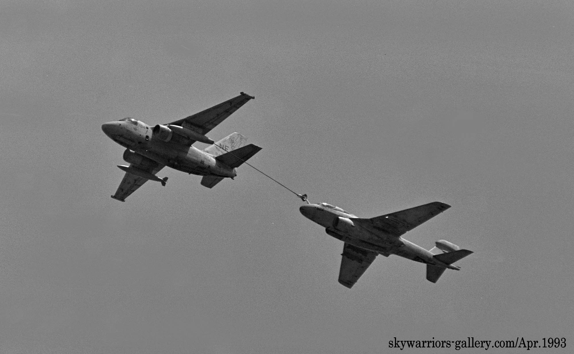 ↑ 1993年4月の厚木航空祭で給油飛行を展示するVS-21のS-3B/NF-704とVAQ-136のEA-6B /NF-622。毎回CVW-5の彼らは”なんちゃって・・”ではなく、本当にプローグとドローグを接続させてフライパスをすると言う技術の高さを見せてくれた。