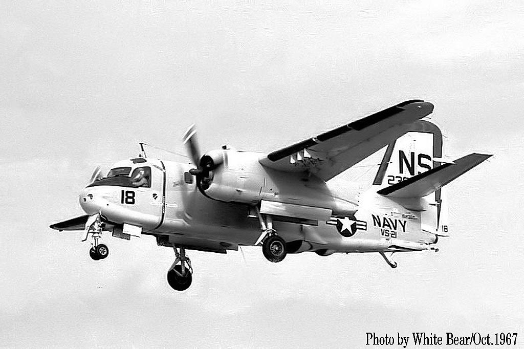 ↑ 同日に伊丹空港に着陸したS-2E/NS-18。1967年頃、CVSG-53にはVS-21/VS-29/VAW-111/HS-6等の飛行隊が傘下にあったが、母艦だったUSSキャサージは1970年2月に退役し、空母タイコンデロガ(CVS-14)に移動している。
