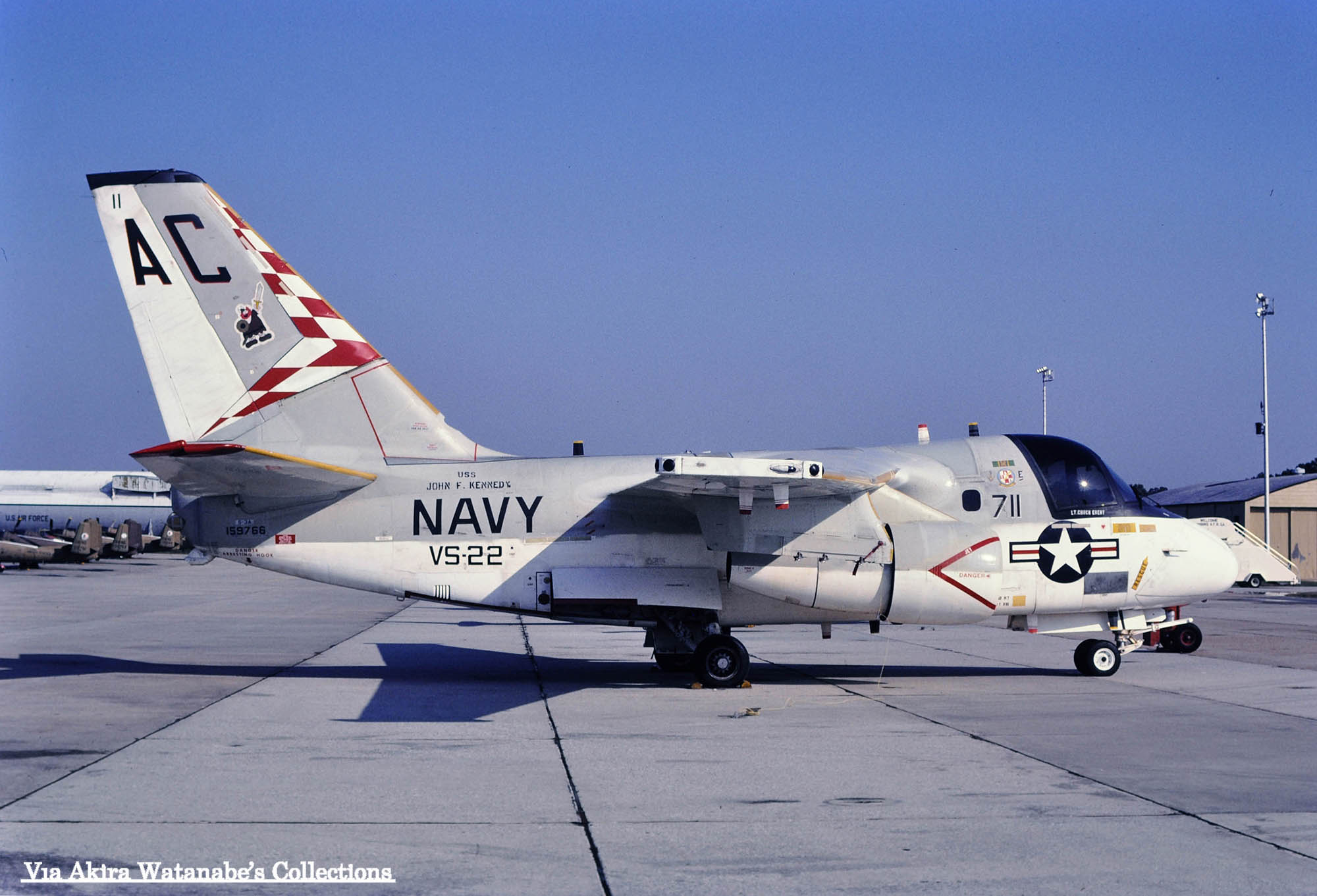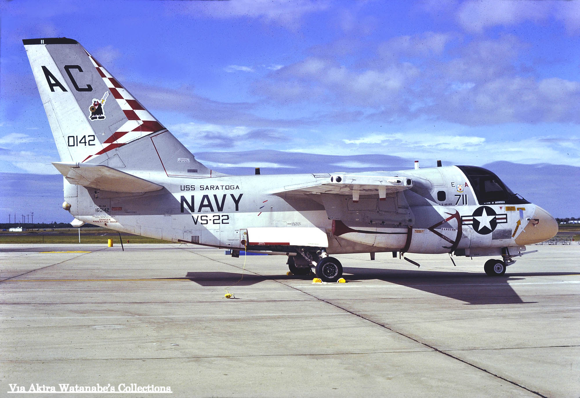 ↑ 1978年5月メリーランド州アンドリュース空軍基地をタキシーするVS-22のS-3A/AC-700。翼下のラックにMk-82の訓練爆弾を懸架しているが、同隊の訓練写真には爆弾を懸架しているものが多い。対潜機とは言え魚雷だけでなく通常爆弾の投下訓練も行われていたのである。