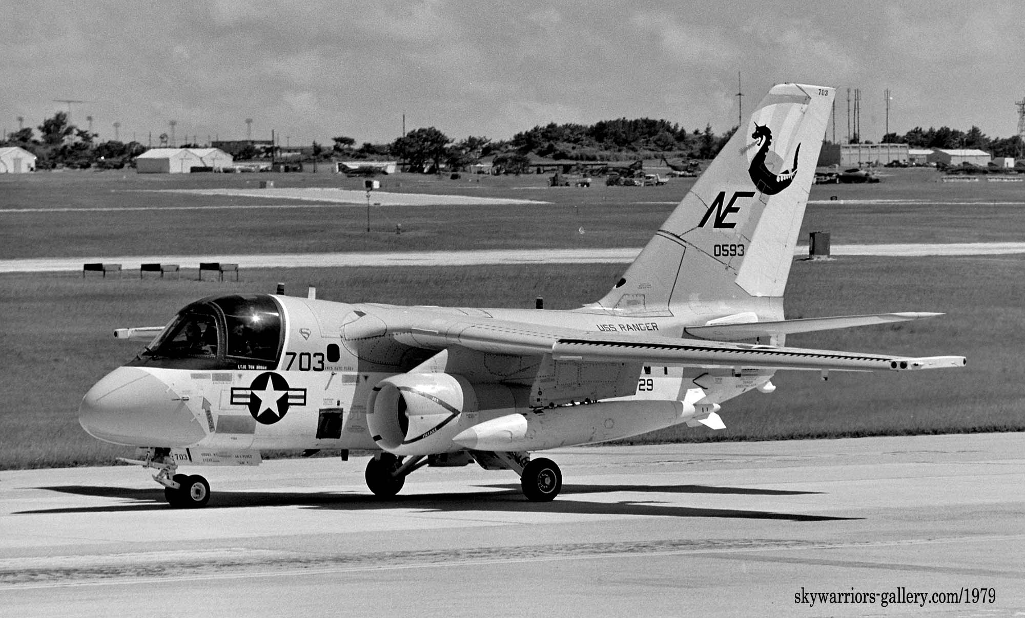 ”DRAGON FIRES”と名づけられたこの部隊は、1960年4月1日に創設された。1964年から太平洋方面での活動が本格化して、ベトナム付近のトンキン湾での活動を行っている。1975年にS-3Aバイキングへ機種転換完了して北欧のバイキングが使用したドラゴンシップをモチーフにしたマークを尾翼に入れていた。1974年7月にS-3Aの1機目を受領しているので VSとしては早いほうである。最初にCVW-14に配属されUSSエンタープライズで航海にでて以来 一貫して太平洋方面で活動してきた部隊である。1976年に2機が横田に飛来している。その後 CVW-2に配属がえになり USSレンジャーに搭載されている頃 嘉手納にも飛来して漸く撮影の機会に恵まれた。このときは、コクピット脇に スーパーマンのSマークを入れていた。その後1981年には、USSキティホークに搭載されCVW-15の傘下で運用されてる。CVW-15がUSSカールビンソンへ移動後は、1984年から1990年まで4回に渡り 同空母で航海に出ている。1991年からはCVW-11に移動し USSリンカーンに搭載されてフィリピンのピナトゥボ山噴火の際スービック湾海軍基地からの退避などで活躍した。部隊は、2004年に閉隊となった。