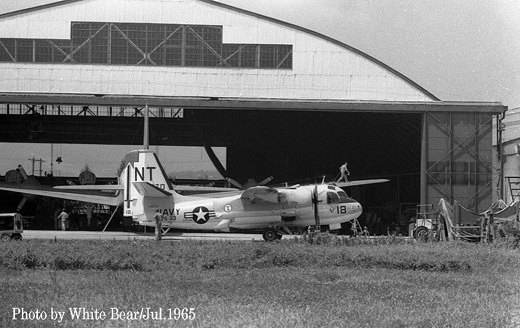 ↑ White Bearさんが1965年7月に伊丹空港で撮影されたVS-33のS-2E/NT-18/Bu.No.149870。この時のスクリューバードのマークはエンジンナセル後方に書かれていた。また胴体後部には”CVS-20""CVSG-59"などこの機の所属を示す表示がある。CVS-20はUSSベニントンに搭載されている事を表す。このS-2Eはグラマン社で生産開始した初期は"S2F-3S”と呼ばれていた型。