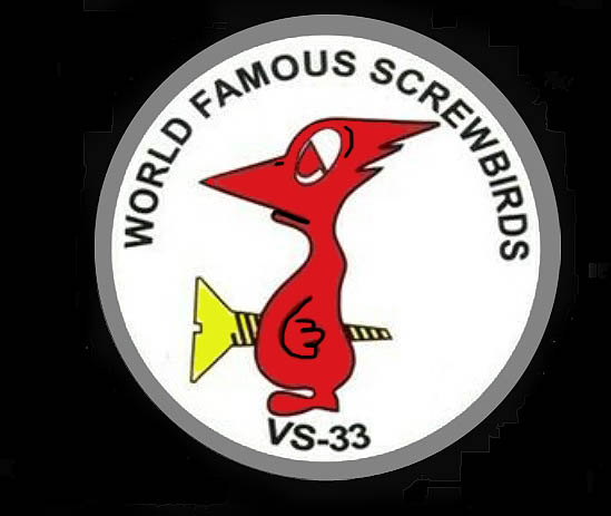 ところで"Screwbirds"・・ねじ鳥と言う部隊パッチは、どのような経緯で生まれたのだろう。"Screwbirds"の本来の意味はネジを自動で供給し、ドライバーで締め付ける作業を効率化させる装置の事であるが、この部隊名の由来が古い文献にあったので、私の拙い英語力では100%正しいか分からないがご紹介してみる。部隊がまだS-2トラッカーを使っていた1974年頃、当時のCDRは、ジョン・クーン中佐であった。隊長は常々飛行機を操るのは機長の責任で、機長の指示で全ては運用されるべきとの言葉を発していた。この言葉尻を捕え 下士官達が冗談で「おいおい おれたちは永遠に右座席(コパイロット席)にネジ止めだな・・」と言った愚痴から 隊が新たにマスコットを募集する際 ウッドペッカー調のキツツキが右手にネジを持ったキャラクターが考案され、その出来の良さが評価されて隊の皆の同意を得て機体に貼ったというもの。