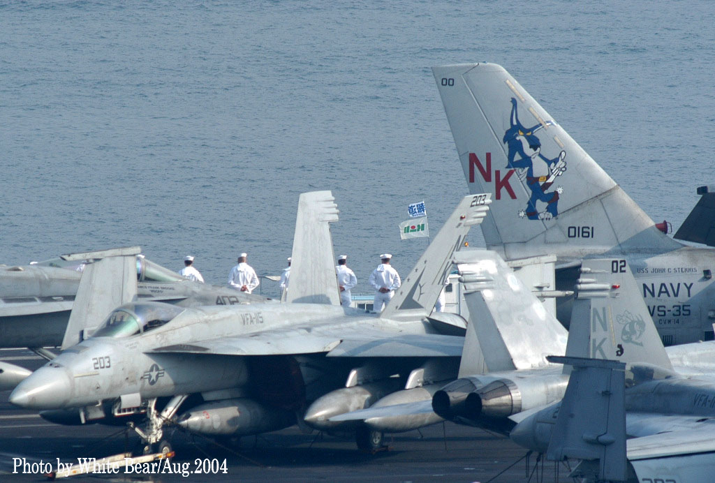 White Bearさんの情報に依れば、入港の前の8月10日にVS-35所属の別の機体が北硫黄島でクラッシュして失われたようで、その機体は私が厚木で初めて撮影したS-3A/Bu.No.160567だったそうだ(1977年撮影時はVS-21所属)。亡くなられた乗員のご冥福を祈りたい。VS-35のS-3Bは、この2年前である2002年8月にもCVN-72