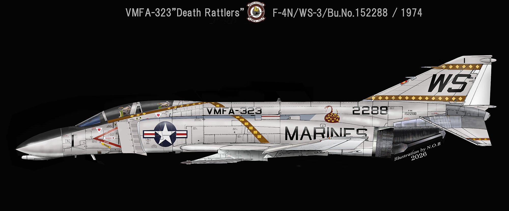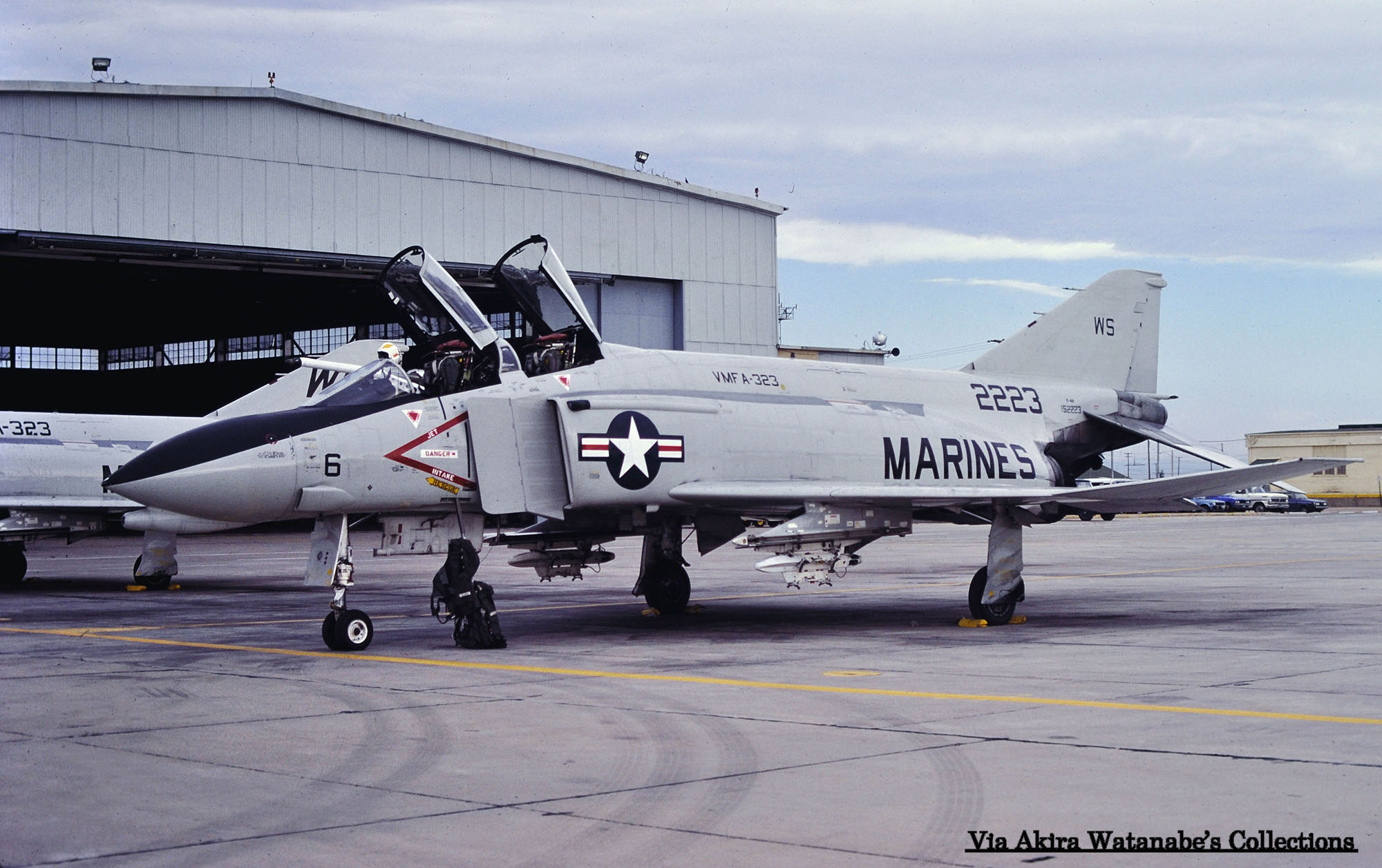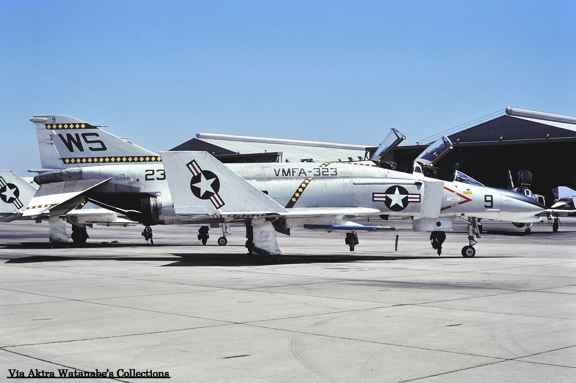 ↑ 1975年8月同隊の本拠地であったカルフォルニア州エルトロ海兵隊基地で撮影されたVMFA-323のF-4N/WS-9