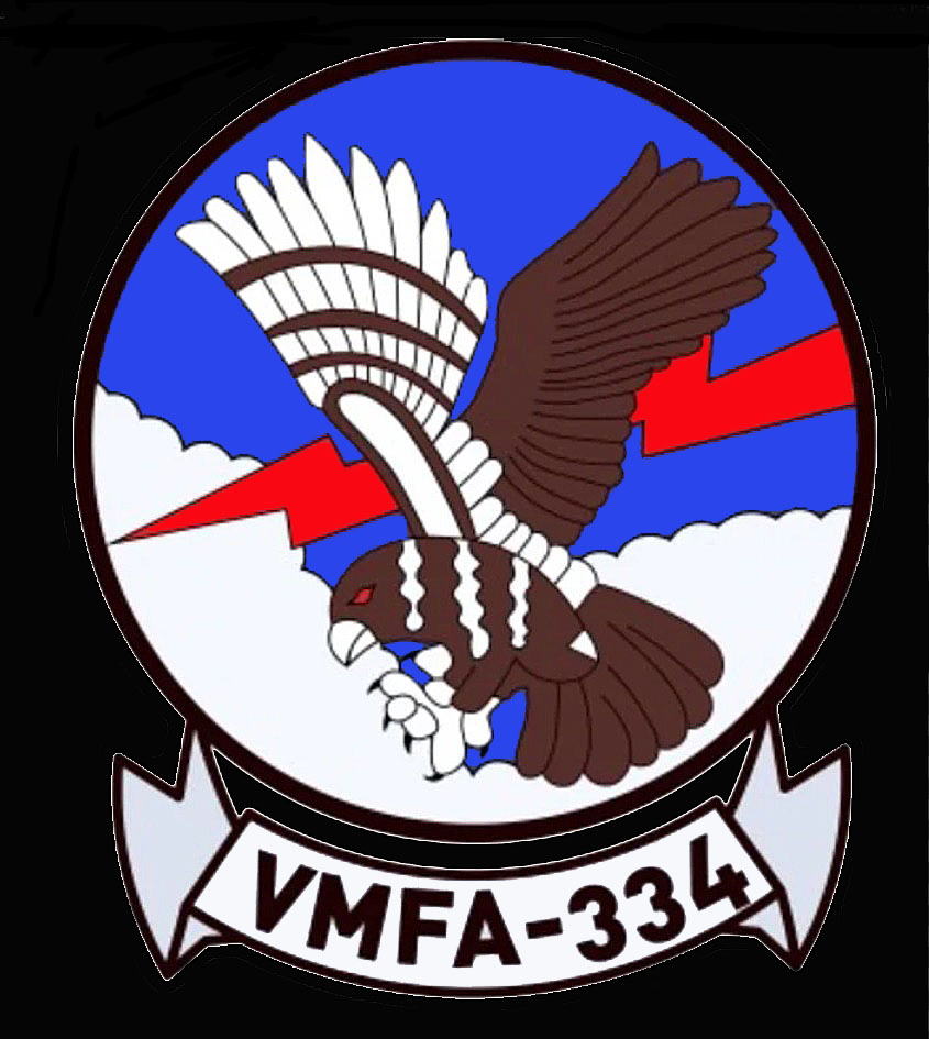 VMFA-334は1943年8月ノースカロライナ州チェリーポイントでダグラス社のSBD ドーントレス偵察爆撃飛行隊(VMSB-334)として発足し、1944年10月に一度閉隊したが、朝鮮戦争の勃発を契機に1952年フロリダ州MCAS