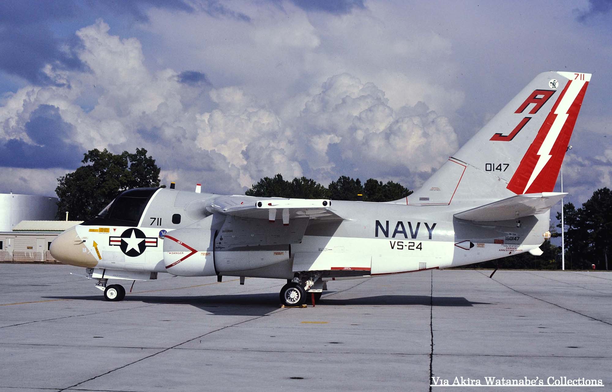 ↑ 1979年9月にNASセシルフィールドで撮影されたVS-24のS-3A/AJ-704。大西洋方面の艦載対潜機部隊は、ほぼこの基地に集約されて、航海に出ていないときは此処で訓練に励んでいた。各部隊は第一航空ASW航空団に統括されていた。