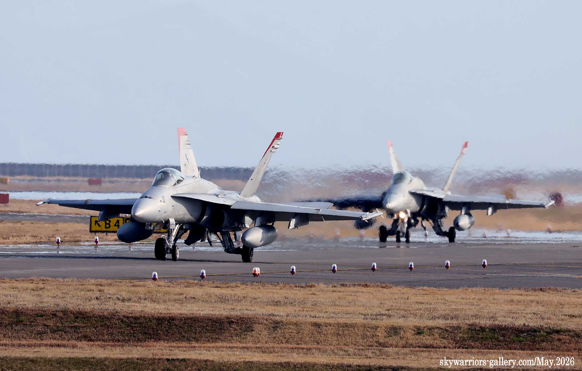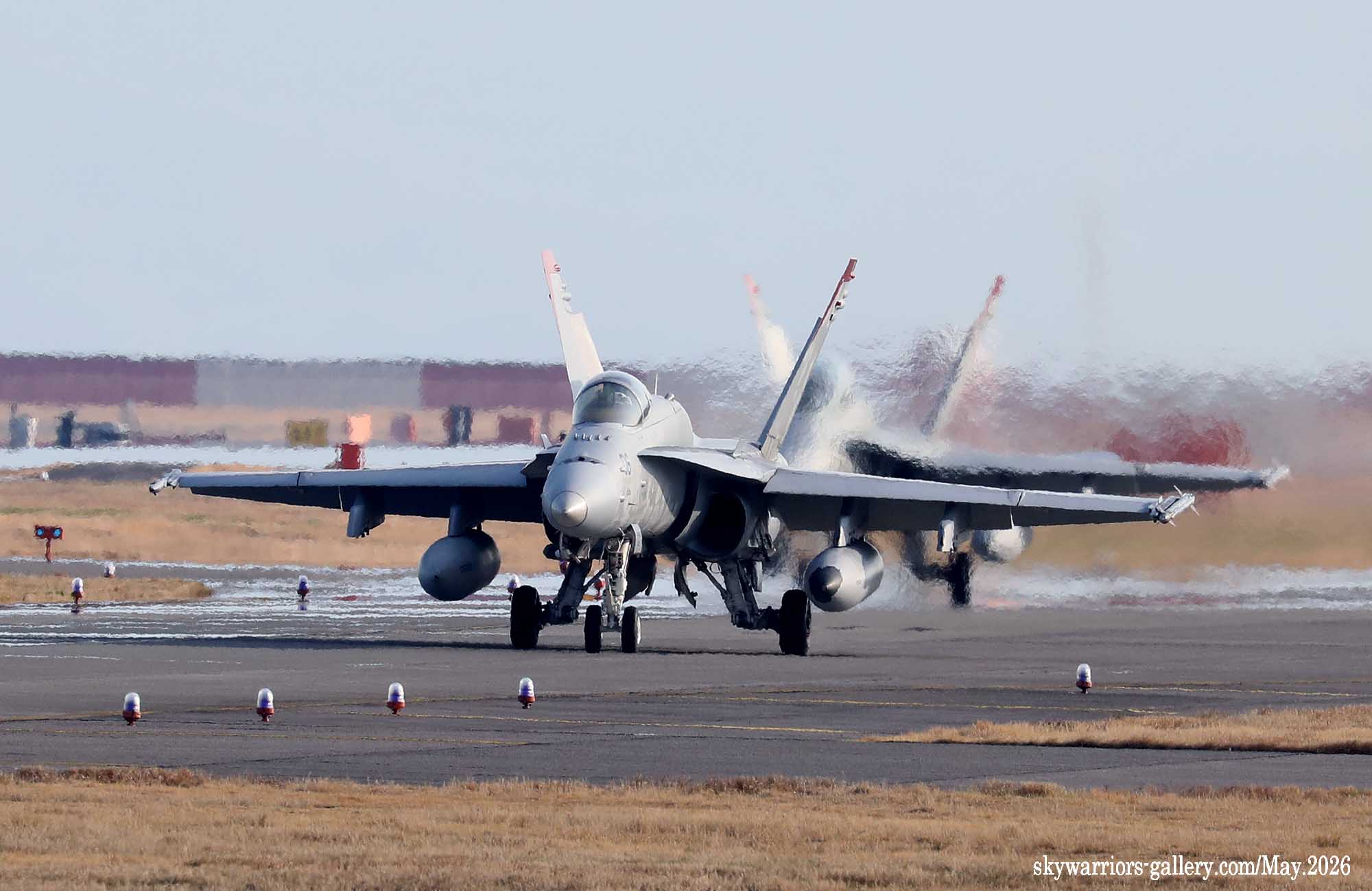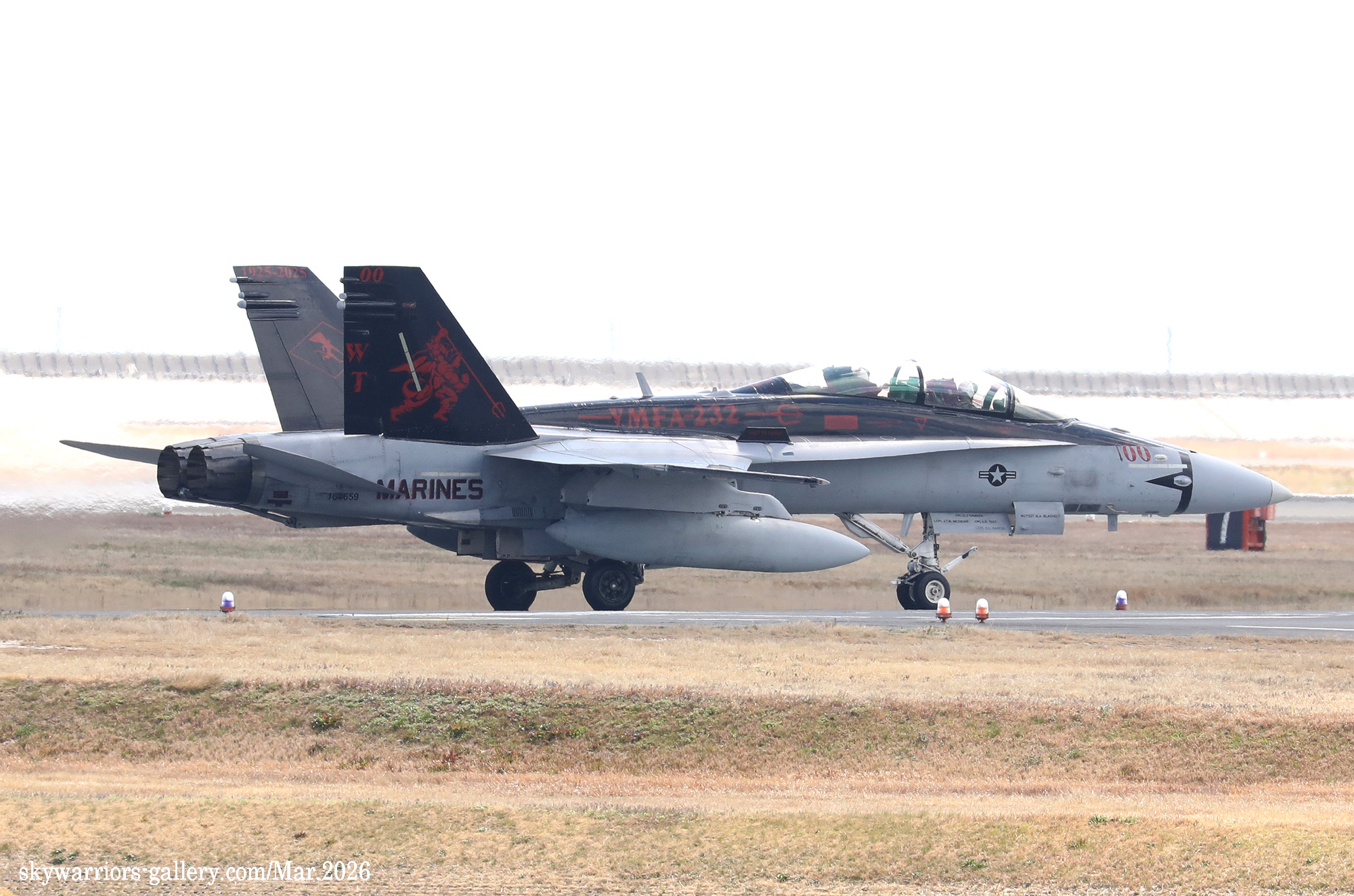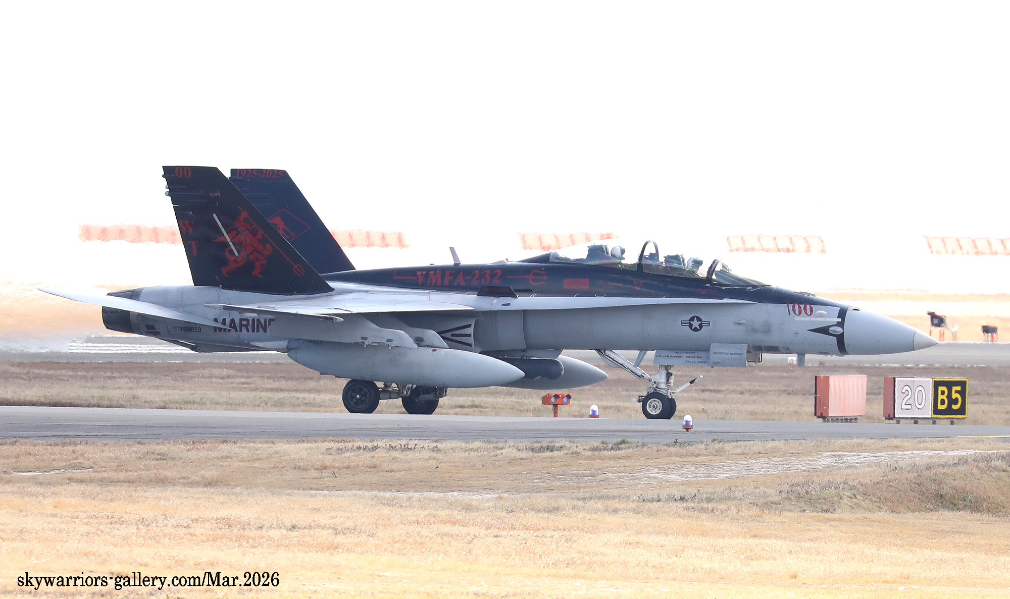 恐らくFA-18C/Dにおける最後のページとなる本項では、今回の遠征の最終日に何とか撮影にこぎつけたWT-00からUPしたい。2026年3月遠征初日の月曜日から5日の日程で岩国基地に張り付いたが、寒い風が吹く中先週まで1日に2フライトもしていたらしいWT-00のブラックデビル君は木曜日までフライトなし、地元では「調子が悪く格納庫入り?・・・簡易ハンガーに姿なし」との噂まで出ていたが、最後の金曜日に昼前に離陸姿を見た。光は良くないが、ブラボーで曲がらずエンドまで来てくれることを願いひたすら待つ、願いは漸く叶いファインダーに収める事が出来た。光は良くないが撮れただけ良しとしなければならない。どうもこの部隊の後継と目されるVMFA-311の方はイラン戦争の関係か来日が遅れそうである。暫く岩国でもまだ撮れるチャンスがありそうであるが、私は今回でピオルドを打って、次回VMFA-232を取り上げる場合はページを作新してF-35Cとしてご紹介したい。(2026年3月 記)