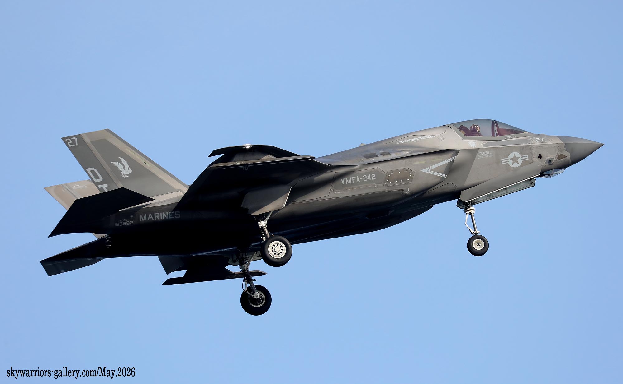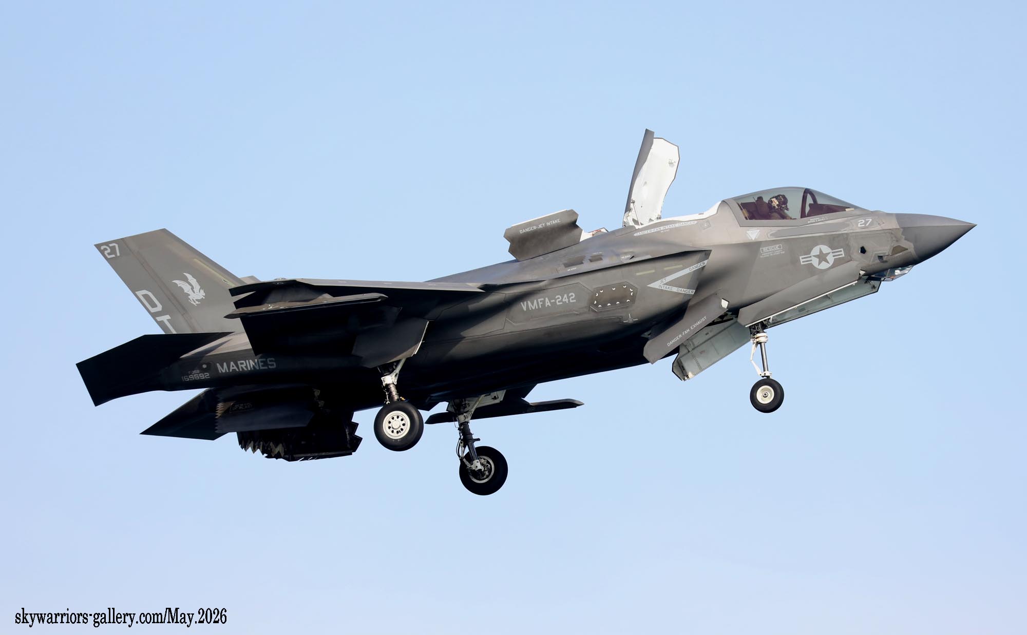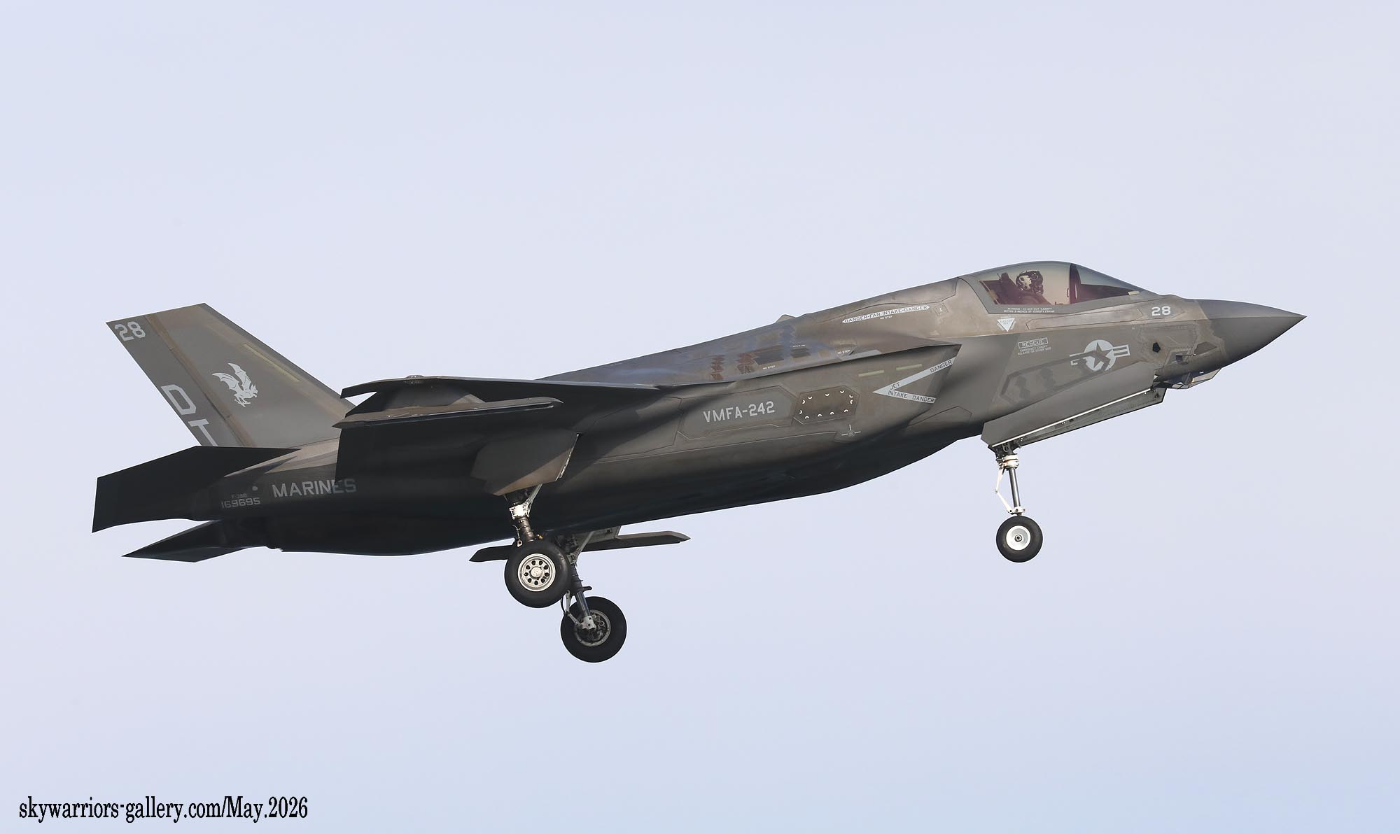 2026年3月の岩国行でのVMFA-242の様子を本項でご紹介する。この時の世界情勢は、2月28日に開始されたイラン攻撃である。イランに突然の奇襲をかけたアメリカとイスラエルに対し、海空の軍事力を削がれたイランはホルムズ湾封鎖を宣言して世界経済を盾に取る対応に出た。地上戦に入り長期戦となることを恐れたトランプ政権は、イランの石油積み出し港カーグ島の占領を匂わせてイランに圧迫を続けていた。佐世保を母港としている強襲揚陸艦トリポリは出港準備をして、沖縄の第31海兵遠征部隊と共に動こうとしていたのである。(2026年3月 記)