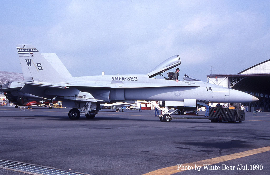 ↑ 上の2枚の写真は1990年9月に開催された小松基地航空祭に展示された2機のFA-18Aで、部隊は何れもVMFA-323であった。White